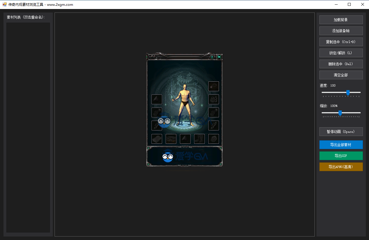 爱学GM资源社区 传奇工具 传奇内观素材展示工具V1.1 https://www.2xgm.com/2328.html