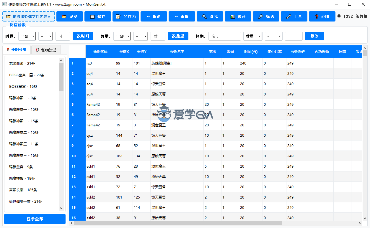 爱学GM资源社区 传奇工具 传奇刷怪文件修改工具 https://www.2xgm.com/2564.html